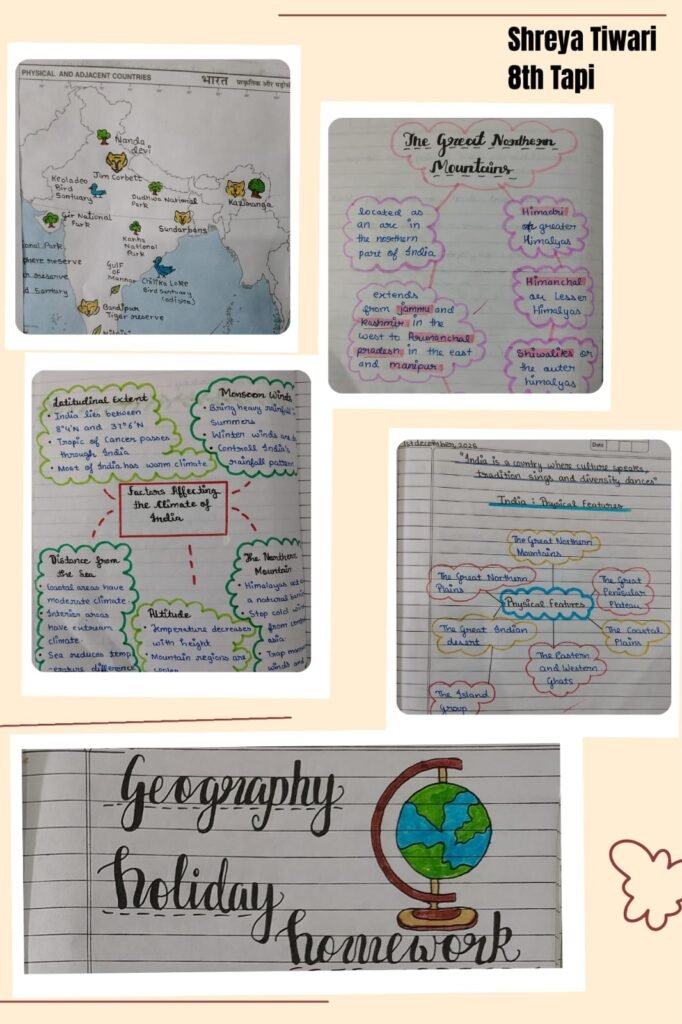 Recently, our middle school students transformed their Geography holiday homework into a beautiful blend of knowledge and creativity. From colorful mind maps to hand-drawn maps and well-structured diagrams, their notebooks reflect not just academic understanding but imagination, clarity of thought, and presentation skills.